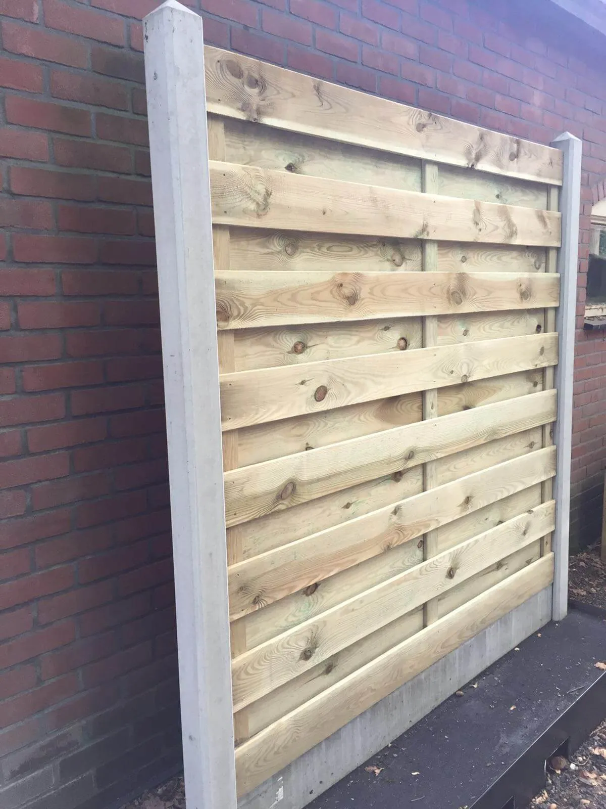 Hout/beton schutting 21 planken met 16/17 mm dikke planken