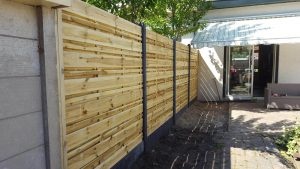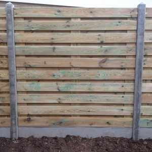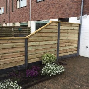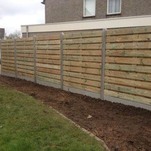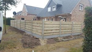 De hoogte van de standaard hout & beton schutting is na plaatsing gemiddeld 195/200 centimeter boven het maaiveld.